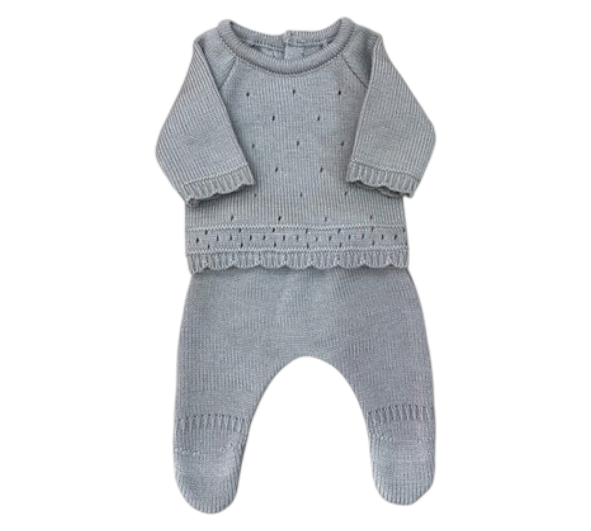 Este hermoso conjunto tejido para bebé está diseñado para brindar comodidad y ternura en todo momento. Consta de dos piezas: